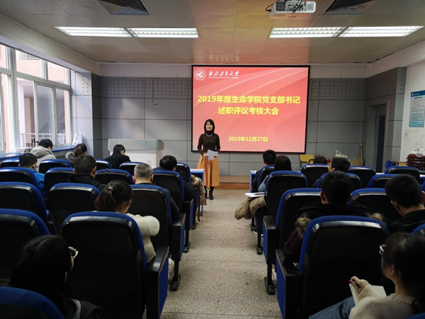 为深入学习贯彻习近平新时代中国特色社会主义思想和党的十九大精神,全面落实管党治党政治责任,进一步推动全面从严治党向基层延伸,切实提高党建工作质量,12月27日下午,必赢242net官网党委在西馆XA208会议室召开2019年党支部书记述职评议考核大会。学院党委委员、党支部委员、系主任、教师代表以及学生代表参加会议。会议由党委副书记赵媛媛主持。