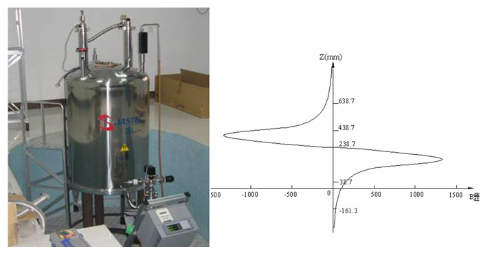 超导磁体腔室中位置(Z)与磁场磁化水平[B·(dB/dz)]关系 |