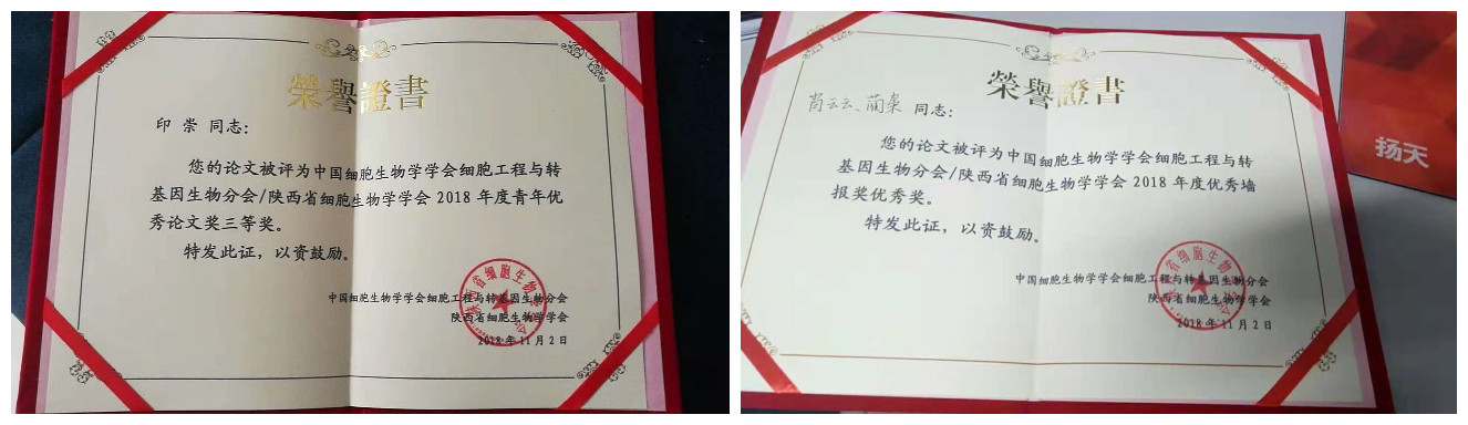 会议邀请我国细胞生物学和转基因生物领域的著名院士林东昕、陈志南做主题演讲,与大家分享最新的科学前沿和研究成果,同时邀请了国内杰出青年科技人员报告最新研究进展。除此之外,会议安排了“2018年诺贝尔生理医学奖”解读讲座,与大家共享2018年诺贝尔生理医学奖获奖人的学术成就和贡献。大会还对优秀论文进行了表彰,骞爱荣课题组印崇博士所投论文获“青年优秀论文奖”三等奖,硕士生肖云云、蔺枭讲师所投摘要进行墙报展示,并获“优秀墙报奖”。会议内容精彩纷呈,是一次高水平、具有实效性和创新性的研究交流盛会。(文:肖云云;审核:骞爱荣/马西平)
