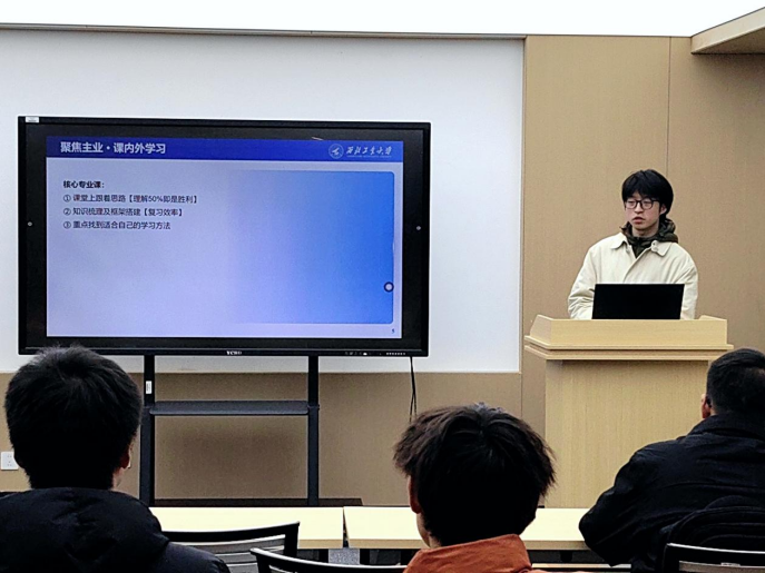最后,班主任任煜京老师进行了总结,以两位学长的学习生活经历为例,鼓励同学们在大学期间探索并找到适合自己的学习方法,从而度过一个充满活力和精彩的大学生活。