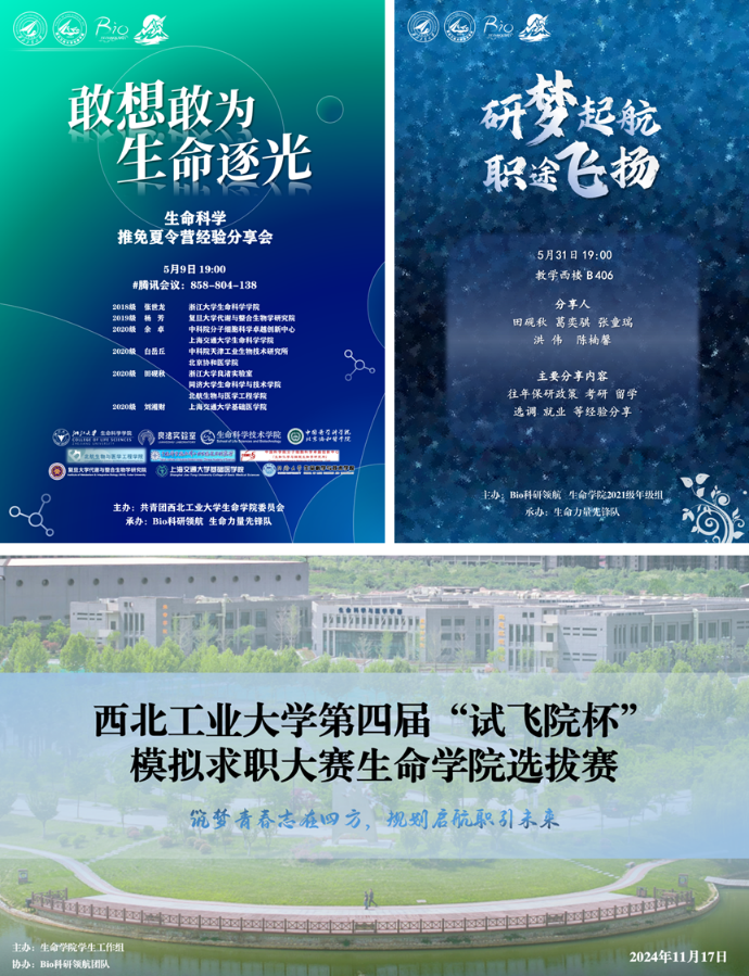 “Bio科研领航学生团队”成立于2023年3月,连续两年获评“先进学生团队”。团队“以培训为基础,以多种实践形式提升能力”,从朋辈层面落实西工大“三位一体”人才培养体系。组织参与“2023年中国生物物理学会纳米酶分会年会”、“2024陕生六校生科博士生论坛”等。团队积极挖掘成员们的兴趣点,并给予相关帮助与指导,组织多场文献检索及论文写作教学,开展多期定制化的领航计划实验项目,并编撰了若干实验操作手册。坚持“兴趣主导”的原则,培养成员们对生命科学领域的热爱。