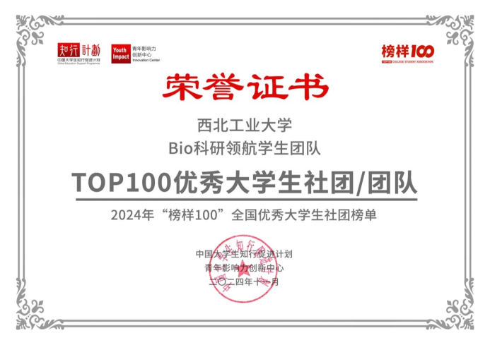 2024“榜样100”全国优秀大学生社团及团队榜单于近日发布。“Bio科研领航学生团队”脱颖而出,入选2024知行计划“榜样100”全国优秀大学生社团及团队榜单!