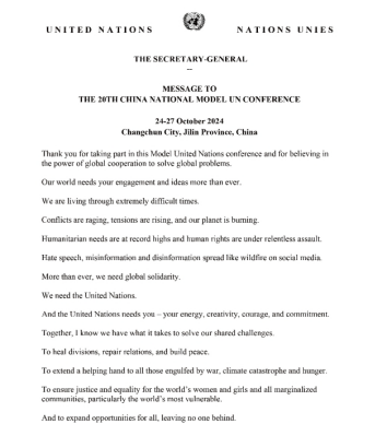 第二十届中国模拟联合国大会由中国联合国协会主办、外交部国际司支持,东北师范大学承办。该大会至今已成功举办二十届,广受国内外关注,不仅收到了联合国秘书长的贺信,还邀请到任义生大使进行会前讲座。成竞业、刘昕生等十余位大使、参赞、专家学者和数百位参会代表出席会议。