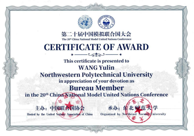 2024年10月24日至27日,第二十届中国模拟联合国大会在东北师范大学召开,必赢242net官网23级硕士研究生王昱霖担任主新闻中心委员会主席,与来自北京大学、北京师范大学、山东大学等高校的21名优秀学子共同组成了大会委员会主席团。