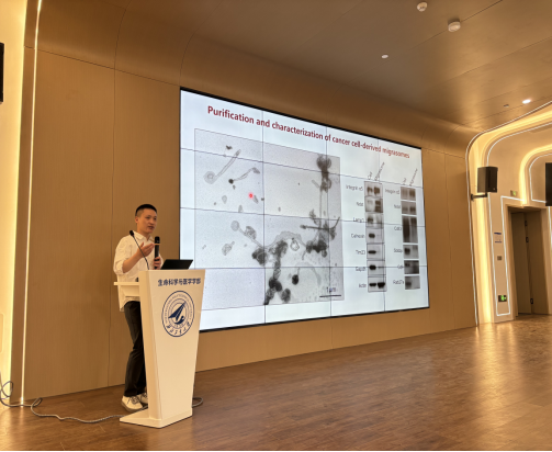 在报告中,姜东系统阐释了其在迁移体生物学领域的开创性研究成果,构建了迁移体研究的方法与技术体系。他不仅梳理了迁移体的发现历程、标记物鉴定及在胚胎发育、肿瘤转移、免疫反应、凝血等生理病理过程中的核心功能,还创新性地建立了迁移体活体成像技术平台等体内研究方法体系,开创了体内迁移体研究的范式。