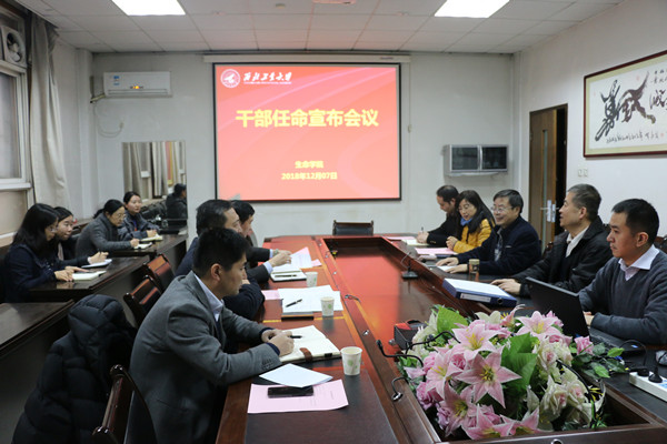 12月7日下午,必赢242net官网在102会议室召开干部任命宣布会议,校长助理侯成义同志,党委组织部部长詹浩同志,唐玉生同志,必赢242net官网领导班子成员,系主任,教工党支部书记,办公室全体人员参加。会议由学院院长仓怀兴同志主持。