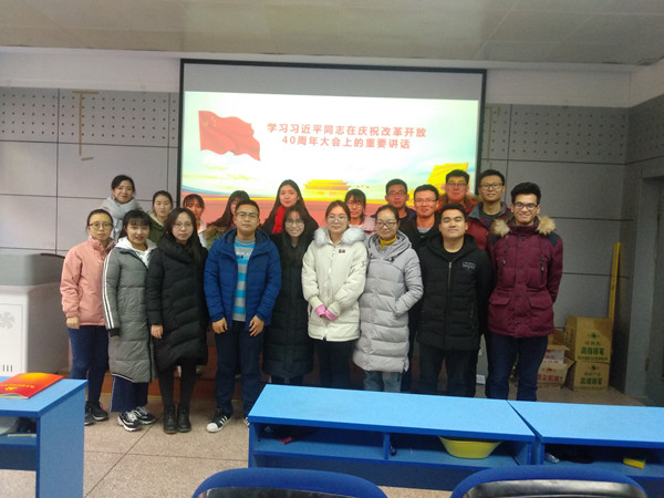 2019年1月11日,必赢242net官网2018级硕士研究生党支部在XA208召开了“学习贯彻习近平总书记庆祝改革开放40周年重要讲话”专题学习会,2018级硕士研究生全体党员以及部分积极分子参加了此次会议。会议由党支部书记钱德玮同志主持。
