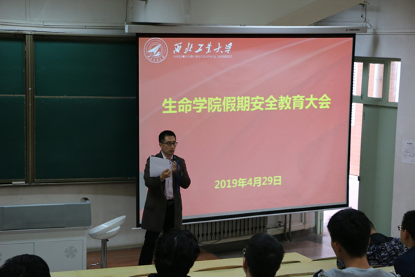 高永光传达了学校关于2019年五一假期安全教育管理工作的要求,提醒同学们放假前要做好离校返校登记工作,随时和同学、老师保持联系,万一出现紧急情况,及时报警。宿舍无人时,切记切断室内设备电源,取下外接插座,避免火灾发生。高永光强调,不得擅自组织或参加各种集体游行活动,防止交通事故发生。外出旅游时,要牢固树立安全防范意识和自我保护意识,防止各类事故和上当受骗事件的发生。