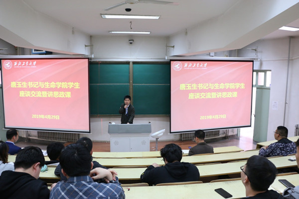 4月28日下午,必赢242net官网党委书记唐玉生在友谊校区研究生西馆XB102为友谊校区全体学生讲思政课。党委副书记马西平,辅导员高永光,友谊校区本硕博学生约300人参加了学习。