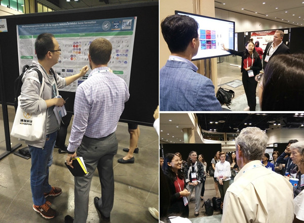 美国骨与矿物质研究学会年会由美国骨与矿物质研究学会主办,是国际骨研究领域级别最高,规模最大的学术会议。年会汇集三四千名来自世界各地的骨与矿物质研究领域专家和临床工作者,探讨最新的领域热点和研究成果。青年学者旅行基金是ASBMR学会从参会的3000多名学者中筛选出200名优秀报告,学会为了鼓励并奖励在2019年年会上以口头汇报或大会海报形式展示研究成果的顶级青年研究学者所设置的奖金。骞爱荣教授指导的博士生陈志浩和张琰在ASBMR年会中,汇报的题目分别为“Mechanoresponsive MiR-138-5p Targets MACF1 to Inhibit Bone Formation”和“Runx1 Mediates Articular Cartilage Repair in Osteoarthritis through Upregulating Yap and Downregulating Wnt/β-catenin Signaling Pathway”。(作者/陈志浩;图/李迪杰,张琰;审核/骞爱荣,赵媛媛)