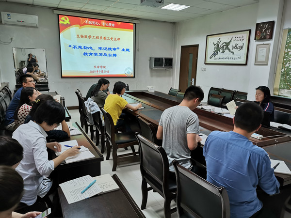 按照中央“不忘初心、牢记使命”主题教育领导小组《关于开展第二批“不忘初心、牢记使命”主题教育的指导意见》和《必赢242net官网组织开展“不忘初心、牢记使命”主题教育实施方案》要求,2019年9月30日,必赢242net官网生物医学工程党支部召开“不忘初心、牢记使命”主题教育专题学习,会议由支部书记卢婷利同志主持。