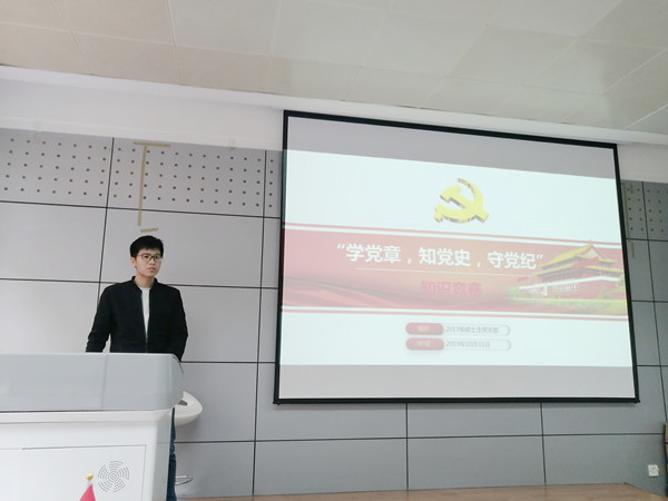 为深入学习贯彻习近平新时代中国特色社会主义思想和党的十九大精神,不忘初心、牢记使命,提高学生党员理论修养,10月31日上午,必赢242net官网第三学生党支部(包括原2017级硕士生党支部及2018级硕士生党支部部分党员)开展了“三创三力”党支部系列主题活动——“学党章、知党史、守党纪”知识竞赛。