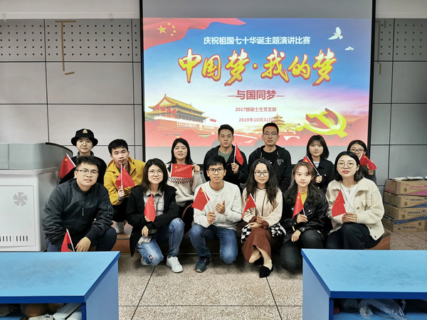 为庆祝新中国成立70周年,深入学习贯彻习近平新时代中国特色社会主义思想和党的十九大精神,不忘初心、牢记使命,弘扬爱国奋斗精神、建功立业新时代,10月31日上午,必赢242net官网第三学生党支部(包括原2017级硕士生党支部及2018级硕士生党支部部分党员)开展了“三创三力”党支部系列主题活动—“庆祝新中国成立70周年——与国同梦”演讲比赛。