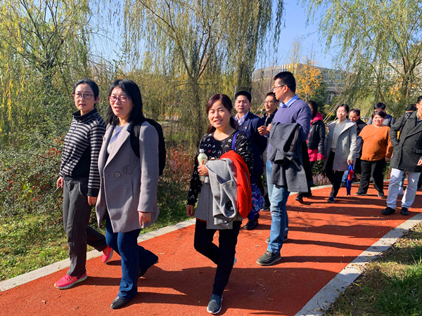 在风景如画的工大新校区,学院老师们从启真楼出发,途径图书馆、ARJ21大飞机,漫步在启翔湖、启真湖旁,感受着深秋湖畔"蒹葭苍苍、白露为霜"的诗情画意,赞叹依山傍水、宏大开阔的校园环境,一路欢声笑语,用充满活力的脚步丈量健康,陶冶身心。