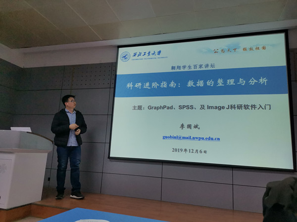 数据分析和作图是科学研究中必不可少的环节,很多刚入学的研究生对于实验数据处理和分析一筹莫展。第一位主讲人李国斌同学介绍了几款常规数据处理软件SPSS(处理)、GraphPad(作图)、ImageJ(分析)的操作和应用,并针对数据分析中常出现的问题提供一些合理的解决办法。