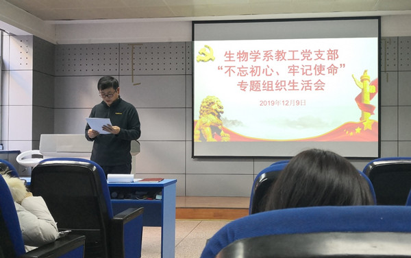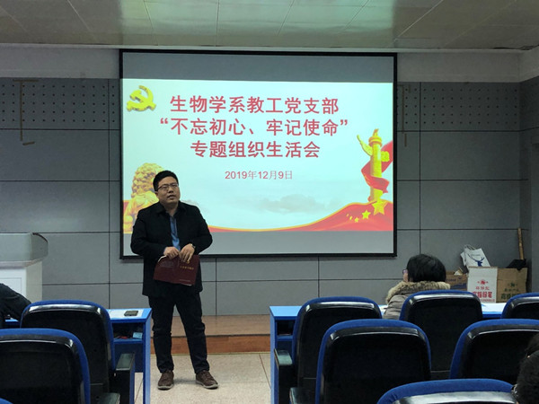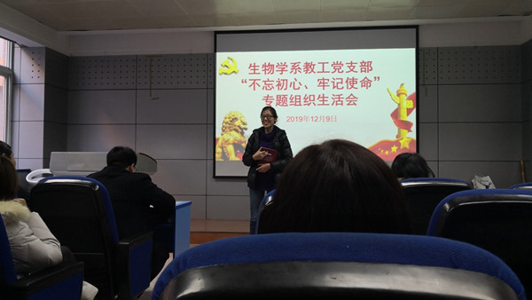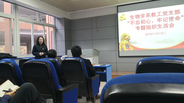2019年12月9日下午,必赢242net官网生物学系教工党支部全体党员在西馆XA208召开了“不忘初心、牢记使命”专题组织生活会。