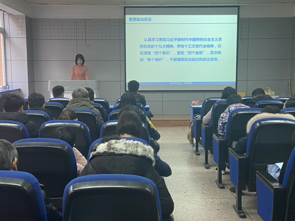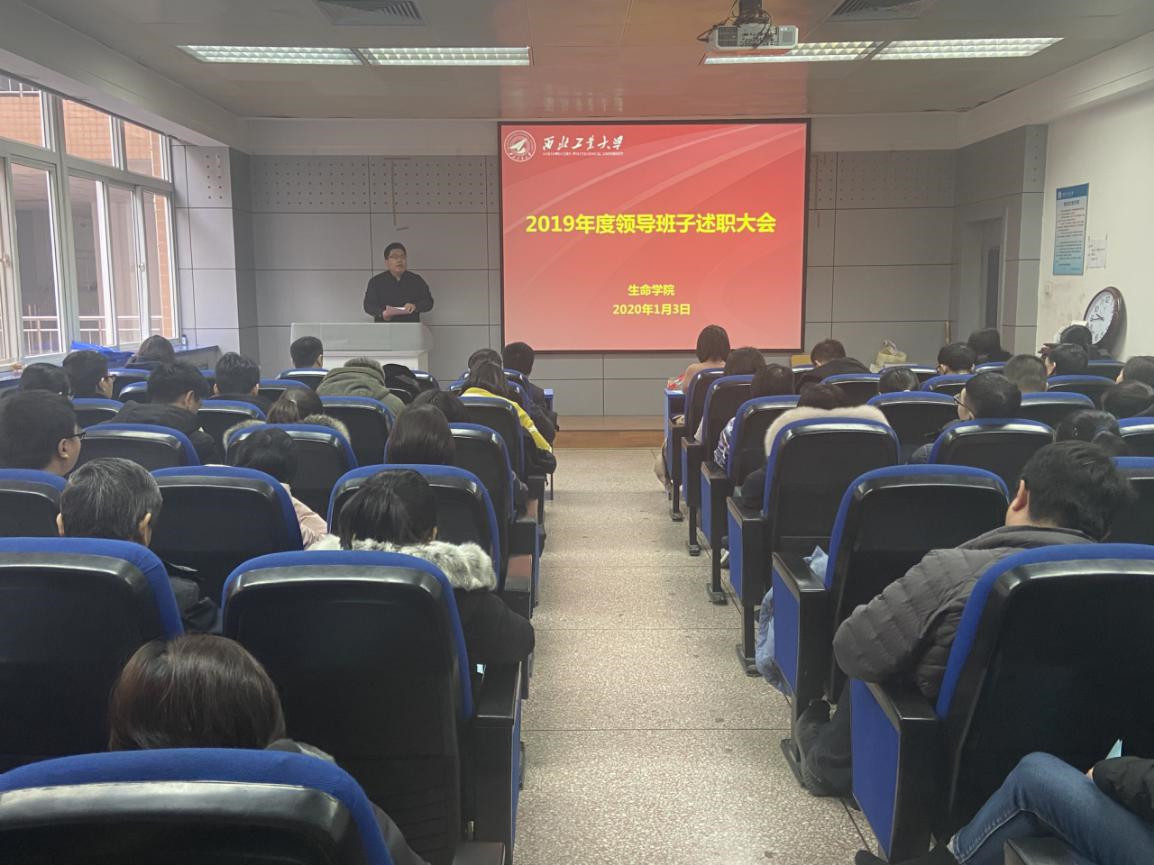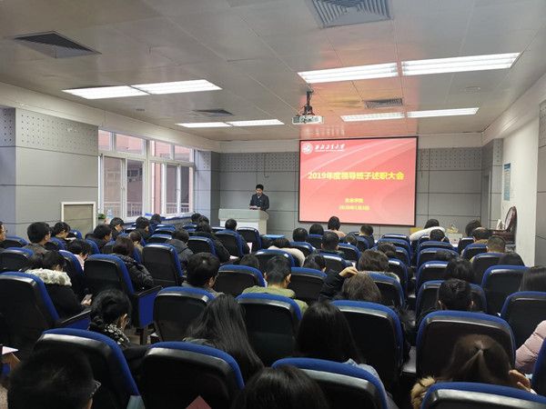 1月3日上午,必赢242net官网在友谊校区西馆XA208召开全院教职工大会暨领导班子述职大会,学院五、六级领导人员进行了现场述职。会议由党委书记唐玉生主持,机关党委杨思敏老师及全院教职工参加了会议。