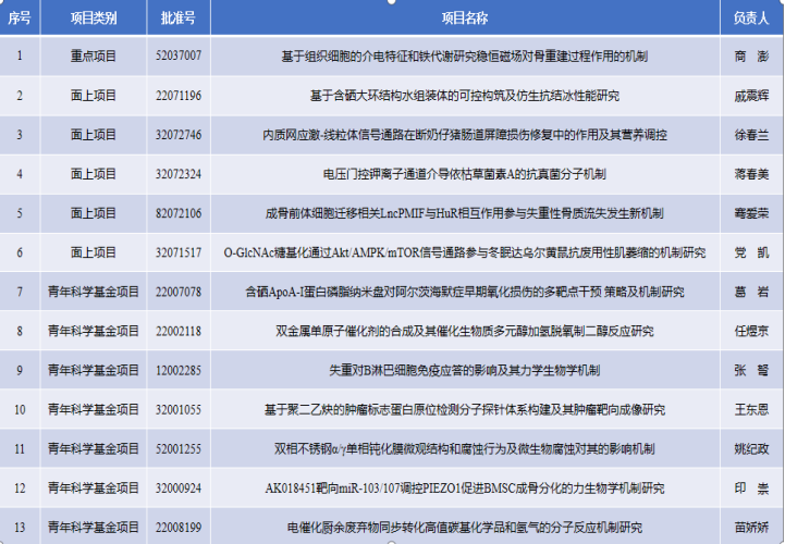 近日,国家自然科学基金委员会公布了2020年度国家自然科学基金集中受理期申请项目的评审结果。必赢官网共有13个项目获得资助。其中,重点项目1项,面上项目5项,青年科学基金项目7项,较去年立项总数增长62.5%,资助经费增长235%,取得了跨越式突破。
