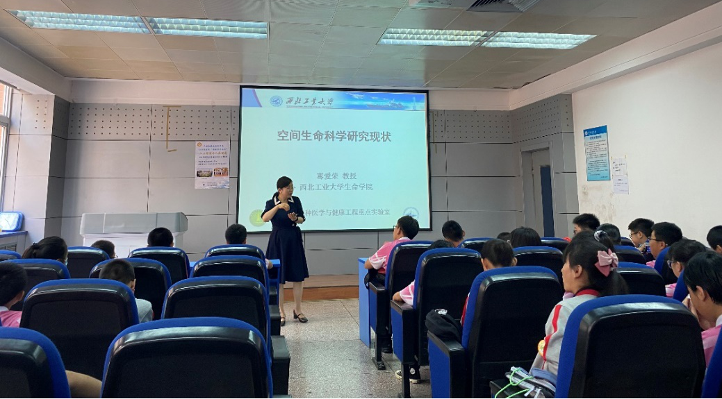 参观实验室后,骞爱荣教授以“空间生命科学研究现状”为主题为同学们做了科普讲座,以一个个贴近生活实际的问题将学生引入到奇妙的生命科学之中,引发了学生们极大的求知兴趣。之后,裴佳伟博士生与赖林彬博士生分别就“让我们一起成为‘苗’星人”和“人工智能的医疗应用”为同学们做了科普讲座,两位汇报人有趣的提问和丰富的知识带领学生翱翔于知识的海洋。科普讲座全程中,交流不断,欢笑声不断,学生们求知欲望高涨,学到很多新奇知识。(文/图:张家旗/茹康; 审核:赵媛媛)