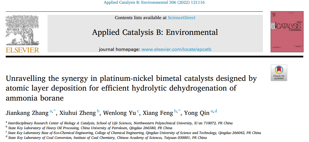 近日,必赢242net官网覃勇教授团队和中国石油大学(华东)冯翔教授团队合作在Appl. Catal. B-Environ(IF:19.5)上发表了题为“Unravelling the synergy in platinum-nickel bimetal catalysts designed by atomic layer deposition for efficient hydrolytic dehydrogenation of ammonia borane”的研究论文,基于ALD技术设计合成了高效的Pt-Ni双金属催化剂并详细探究了其协同催化反应机制。