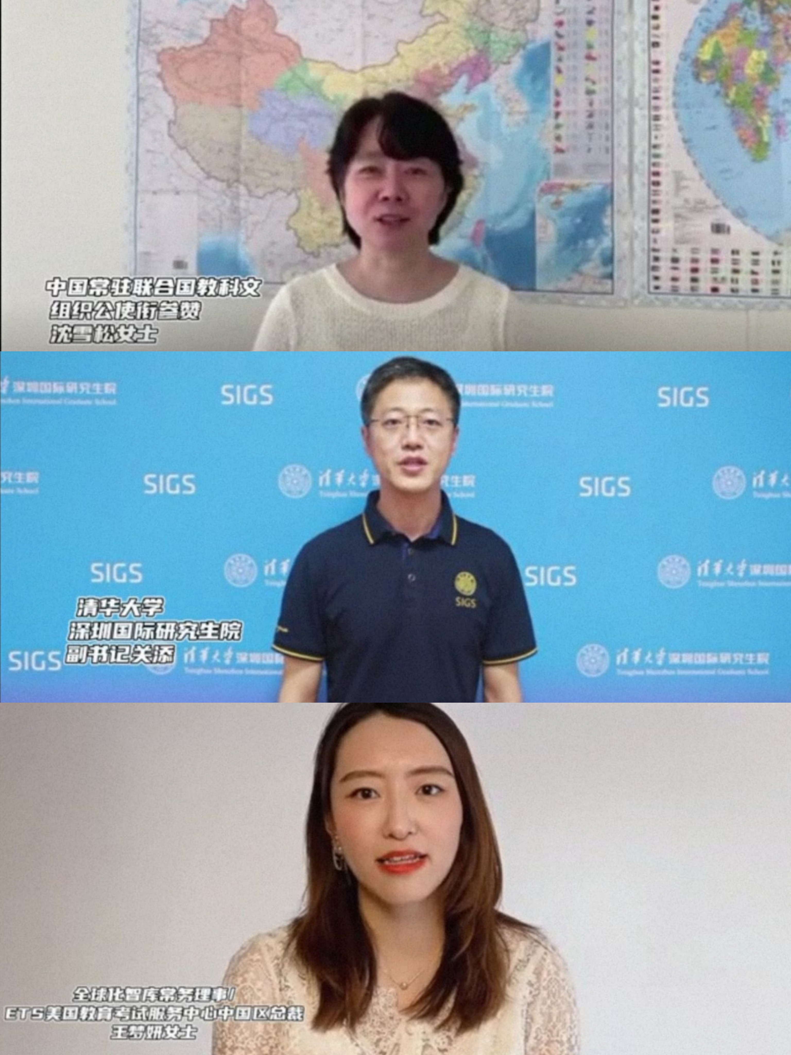 中国驻联合国教科文组织公使衔参赞沈雪松、清华大学深圳国际研究生院副书记关添、ETS中国区总裁兼全球化智库(CCG)常务理事王梦妍等也发来视频祝辞。