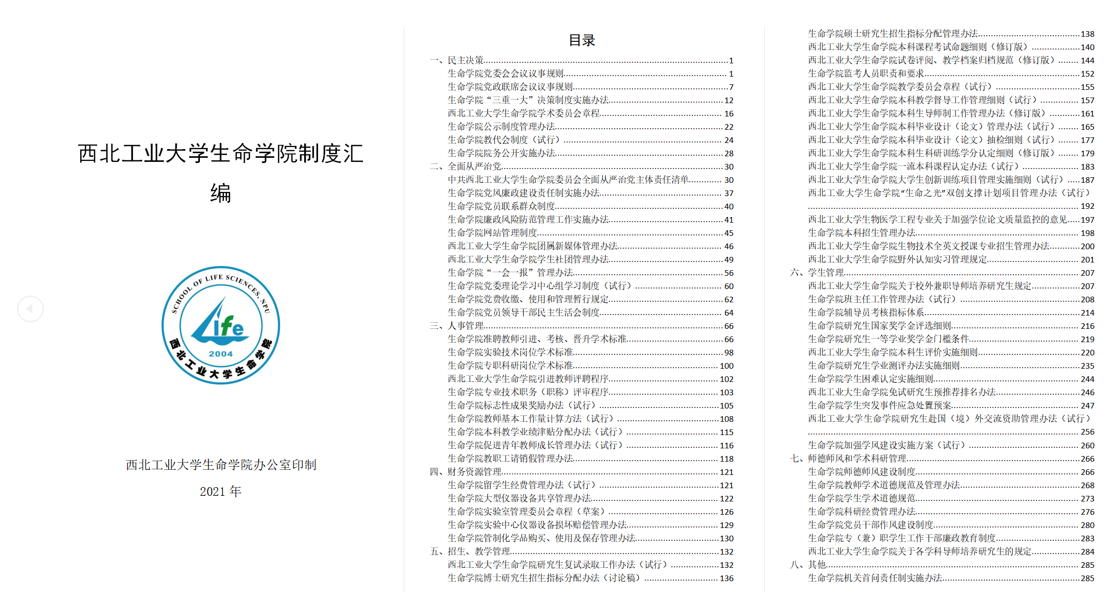 (三)推动人才培养模式改革。在国家加强基础学科创新人才培养大背景下,结合生命学科学生成长发展规律,探索推进本-研贯通的人才培养体系。突出全员育人导向,积极实践和系统研究“辅导员负责年级、班主任负责班级、导师负责个人”责任清晰、任务明确、目标一致的协同育人机制;连续多年在全校学生先进集体和先进个人最高荣誉评选中均有斩获,其中2021年斩获模范班级、模范学生团队、学生标兵等全部5个奖项(全校唯一、建院首次)。积极响应“大众创业、万众创新”的号召,多名老师指导本科生在领域内顶刊发表学术论文,指导学生先后获互联网+大赛陕西金奖,“挑战杯”陕西特等奖、全国一等奖。4个项目入选学校飞天创客空间(总数居全校第一),学院连续两年获“优胜杯”集体荣誉、“互联网+”大赛优秀组织单位,创新创业氛围浓厚。成立学生全球胜任力发展指导中心,为全校学生提供通晓国际规则、参与国际事务的机会。