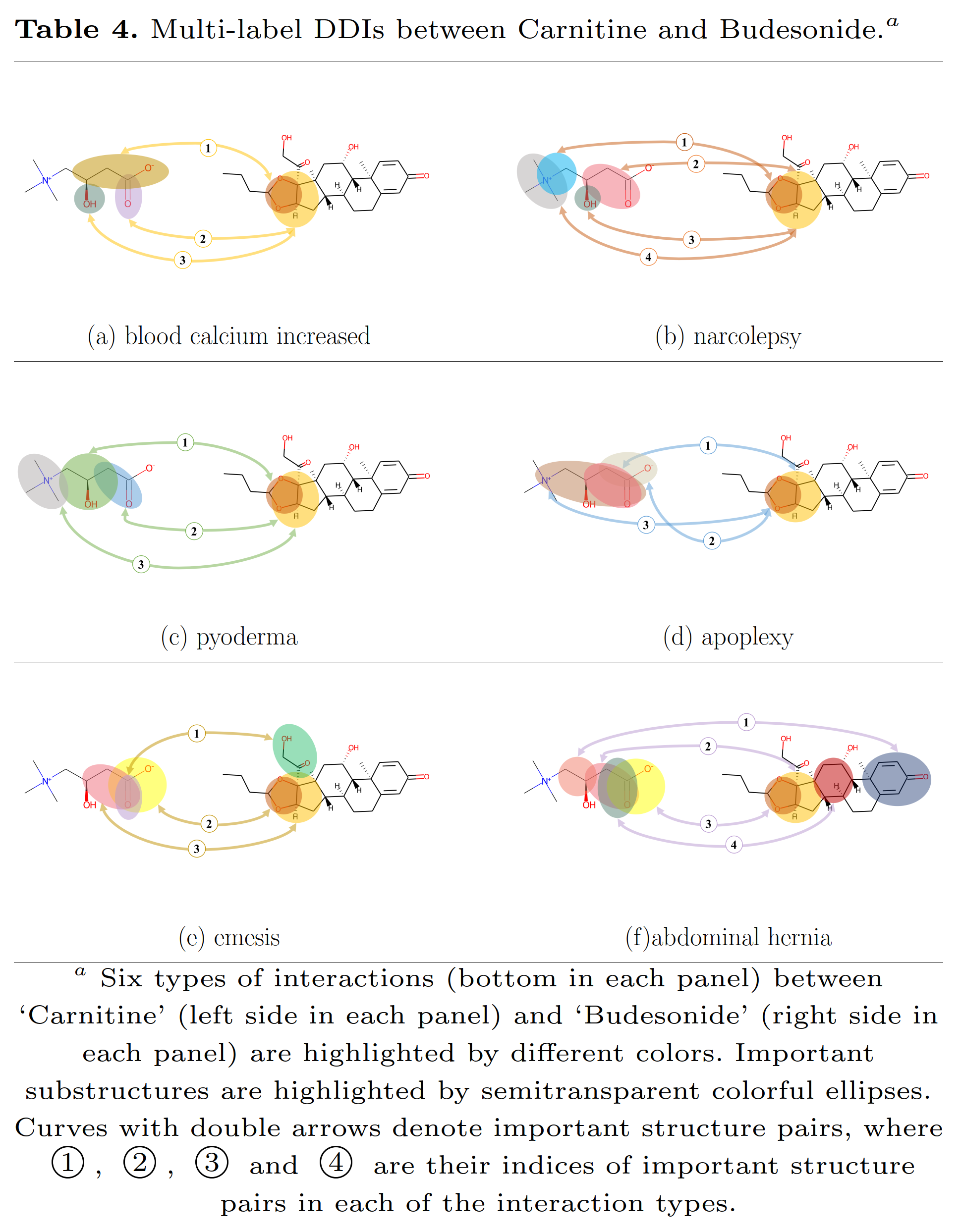 图4.两个药物之间发生多重相互作用时,每种类型各自对应的关键子结构对