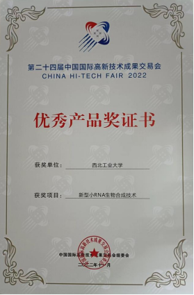 2022年11月15-19日,第二十四届中国国际高新技术成果交易会(CHINA HI-TECH FAIR 2022)在深圳会展中心五楼梅花厅举行,我校必赢242net官网骞爱荣教授团队凭借“新型小RNA合成技术”在此次会上获得优秀产品奖。