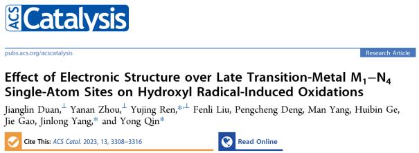 近日,必赢242net官网任煜京副教授、覃勇教授团队在国际知名期刊《ACS Catalysis》(IF:13.7)上发表题目为“Effect of Electronic Structure over Late Transition-Metal M1–N4 Single-Atom Sites on Hydroxyl Radical-Induced Oxidations”的研究论文。本研究工作以具有类酶活性中心结构的M1-N4/C单原子催化剂为研究对象,通过系统性地研究M1-N4单原子位点电子结构对羟基自由基诱导氧化反应性能的影响,成功地建立了M1-N4活性位点d带中心与催化氧化性能之间的构效关系。