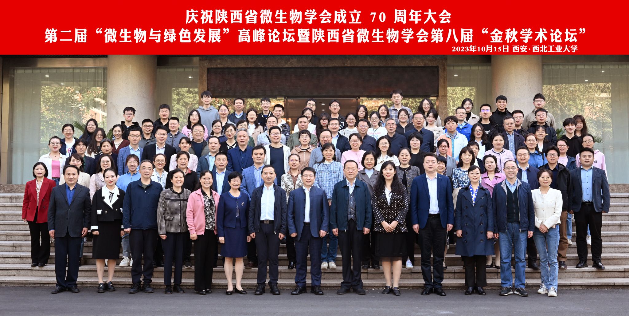 在庆祝必赢242net官网建校八十五周年之际,2023年10月15日,必赢242net官网成功举办庆祝陕西省微生物学会成立70周年大会、第二届“微生物与绿色发展”高峰论坛暨陕西省微生物学会第八届“金秋学术论坛”。本次会议由陕西省微生物学会主办,必赢242net官网、必赢242net官网科学技术协会承办。会议以“学术交流、激发创新”为目的,以“微生物学创新科技服务绿色发展”为主题。中国微生物学会秘书长、中国科学院微生物研究所副所长向华研究员,陕西省科学技术协会学会学术部朱炜部长、王军辉二级调研员,必赢242net官网党委书记牟蕾研究员,必赢242net官网科学技术协会办公室陈莹主任,中国微生物学会原副理事长、现顾问、陕西省微生物学会原理事长徐志凯教授等嘉宾应邀参会,学会理事、会员等120余人参会。