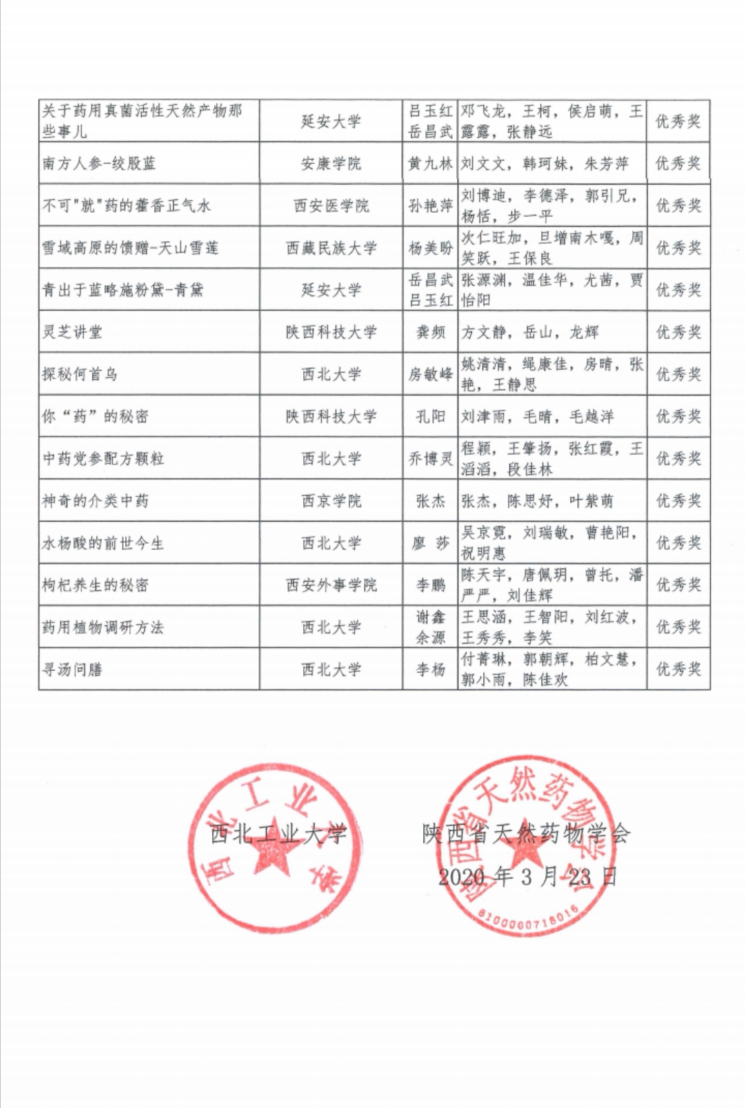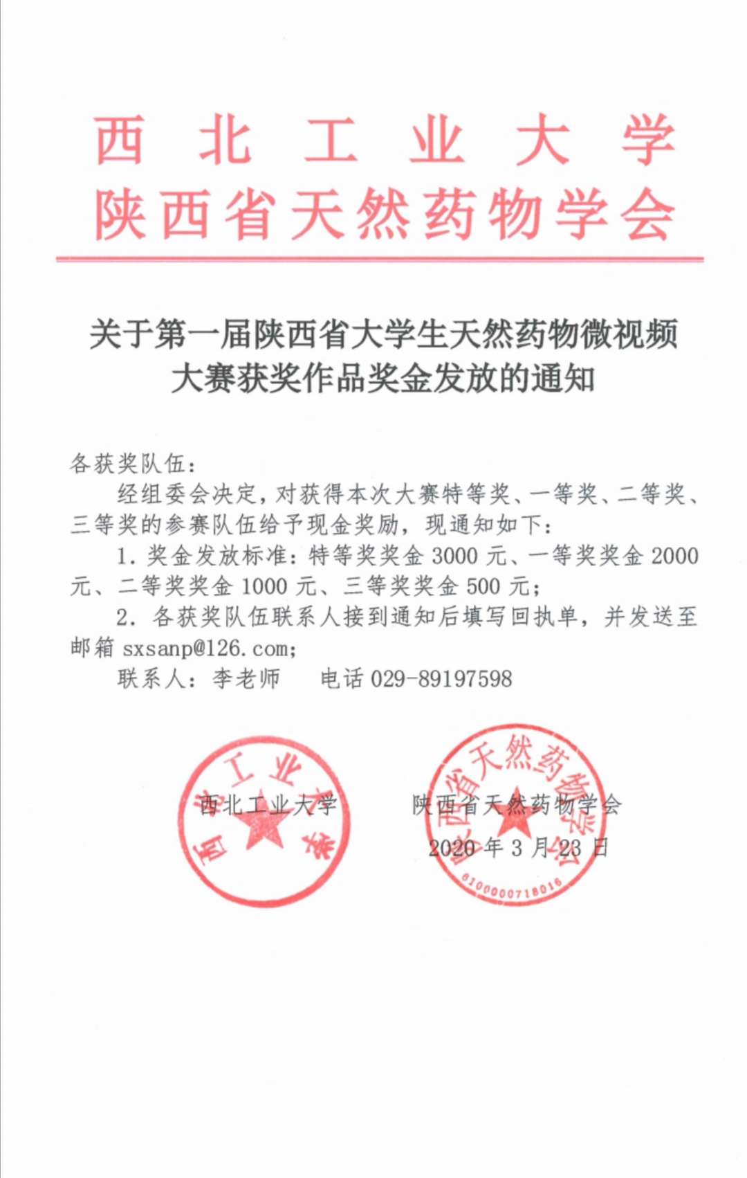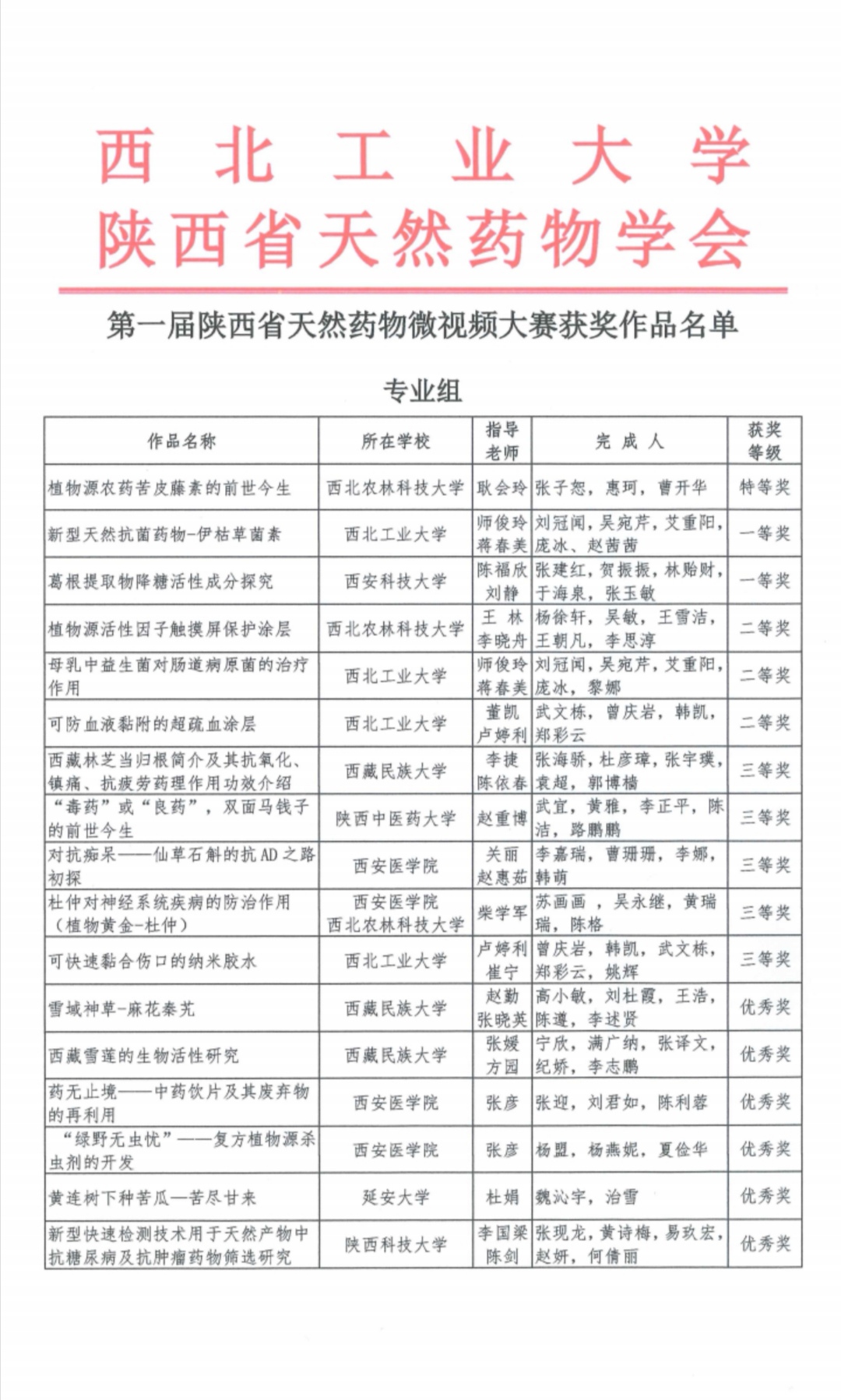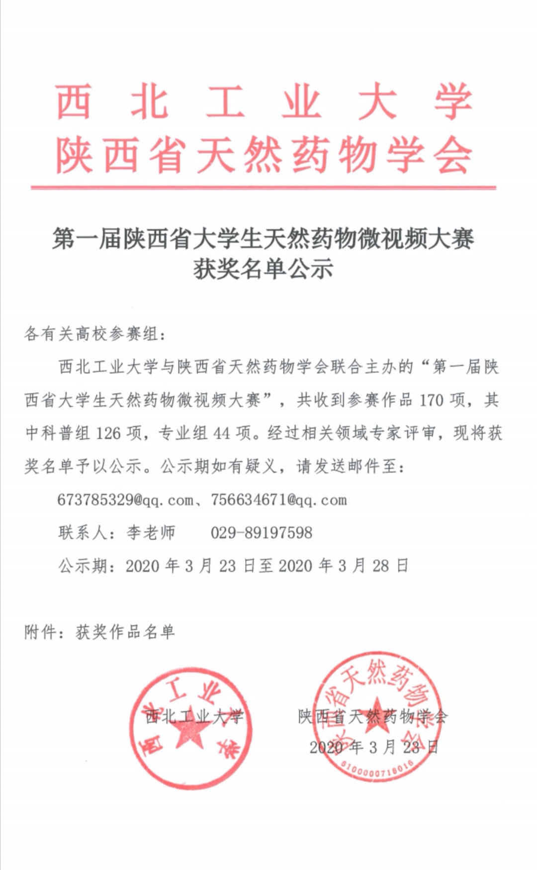 天然药物微视频大赛获奖作品奖金发放通知及获奖作品公示名单