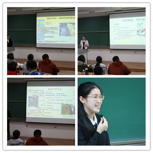 各位优秀学生以“讲故事”的形式和大家分享自己的学习经验。多才多艺的李青阳讲述了自己的求学经历,以及自己选择生物专业的初心。任稳延和大家分享了自己的刻苦钻研学术的学习态度。张晨州分享自己前期失败的经历让大家少走弯路。赵茜茜分享自己的本科经历希望大家珍惜好韶光,过一个充实的大学生活。杨建成告诉大家良好的身体才是刻苦学习的资本。李俊俊分享了自己的科研心得。赵豪宾分享自己的故事告诉大家做好学生工作与取得良好的学业成绩是不冲突的。乔磊分享自己的求学经历,勉励大家脚踏实地,勇敢向前。优秀学生的故事丰富多彩,给同学们奉上了精神盛宴。