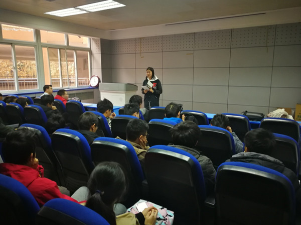 王晓鸽老师首先强调了四六级考试与各科期末考试临近,望同学们重视考试纪律,争取取得更好成绩。另外王老师强调了近期气温骤降,望同学们注意防寒保暖及寝室用电安全。同时与同学们分享了她本人在本科期间支教的经历,告诫同学们在大学良好的学习环境下更加勤奋学习,不要为大学生活留下遗憾。
